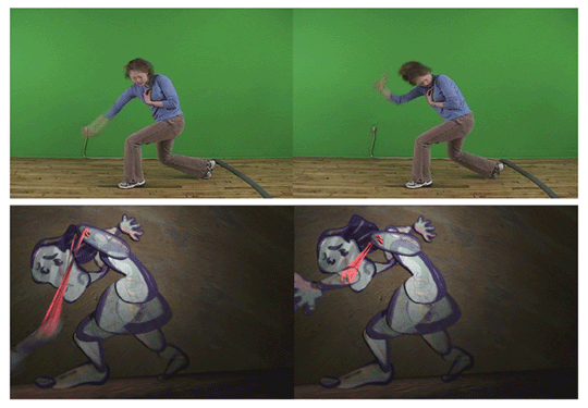 조예원: 일단은 그들의 비쥬얼 아트를 수용하는 태도, Open Mind 에 놀랐습니다. 실제로 쥴리아드에서는 댄싱과 음악전공의 학생들이 공동작업을 하는 프로그램이 있습니다. 시각 전공과의 공동 작업은 그들에게도 처음에라 작업 초 부터 많은 관심을 보였습니다. 저에게 animation reference를 제공해 준 Laura. Halm을 만난 것도 쥴리아드에서의 학기말에 음악전공을 하는 학생들과의 공동작업의 콘서트였습니다. 그들은 4살이나 더 어려서부터 자신의 전공을 해온 사람들입니다. 시각적인 작업을 그들의 언어로 해석하는 것을 지켜보면서 많은 것을 배울 수 있었습니다. Laura나 Justine과는 수시로 의견을 교환하면서 프로젝트를 진행 시켰습니다. 애니메이션 reference같은 경우, 제 애니메이션에서 팔과 다리들이 떨어지는 장면 등의 동작은 많은 도움이 되었습니다. 실제적인 작업의 질적인 향상도 많이 도움이 되었지만, 그들과 작업하면서 디렉터로서 작업의 방향을 이끌어 나간다는 것이 많은 경험을 요하는 일이라는 생각이 들었습니다. 그들의 의견을 수용하면서 제 작업 방향에 맞도록 이끌어 나가야 하는 것이 무엇보다도 중요하겠지요.