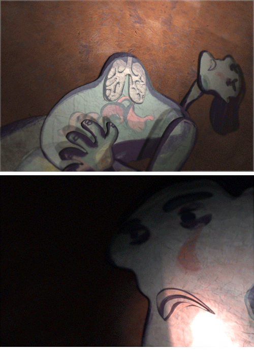 이를 위해 실제로 두꺼운 종이로 2D 스타일의 모델을 만들어 캐릭터 구조 및 모델링에 참고하였으며 주로 사용한 툴은 Maya이며 컴포지팅은 After Effects를 사용하였다.