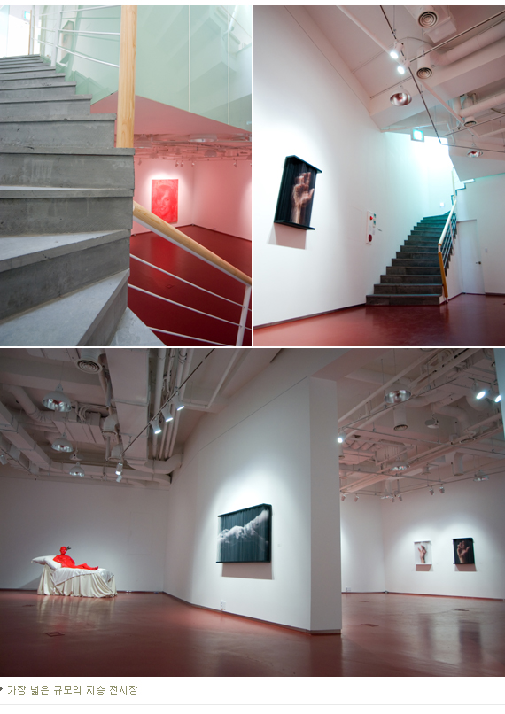 이렇듯 어렵게 확보된 전시 공간은 다시 1, 2층과 지층, 옥상에 구별된 기능을 부여한다. 1층은 입구, 로비, 전시장 등을 동시에 책임지고, 보다 넓은 전시 공간이 마련된 지층은 본격적인 전시장으로서 기능하며, 가장 협소한 2층은 오피스 공간과 상설 전시장, 화장실로 배분되어 있다. 특히 2층의 화장실 공간이 재미있는데, 이는 1층과 2층을 연결하는 삼각형의 계단 사이공간에 화장실 타워를 넣음으로써 공간을 효율적으로 사용한 것이다. 또한 계단과 화장실 벽면의 사이공간에도 규모가 큰 작품의 운반을 위한 슬릿(slit) 기능이 가능하게 했다. 한편 2층에 오피스 공간을 충분히 마련한 이유는,