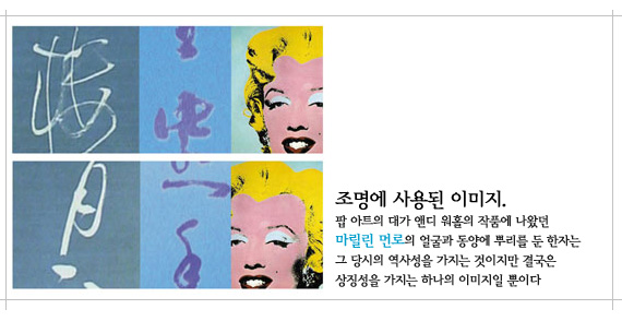 실체가 아니지만 사실처럼 믿고 사는 현대 사회의 우리 모습. 그러나 그 단면만을 보고 살아도 전혀 불편할 것이 없는 진실에 대한 암묵적 기피 현상. 이것을 디자이너는 불상의 쪼개진 단면으로 표현하고 싶었던 것이다.