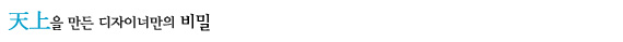 그래서 天上은 디스코 클럽인데도 불구하고 차분하고 고즈넉하다는 말이 오히려 어울린다. 다양한 요소들의 혼재라는 기능 때문에 겉모양마저도 복잡스러운 시각적 유희를 디자이너가 원하지 않았기 때문이다. 현란한 기교로 시선을 유입시켜 받는 신선한 충격 대신에 자연 그대로의 물성과 단순한 무형의 의미를 던져줌으로써 주위를 흡수하는 마력을 이 공간은 지니고 있다. 빛과 주위의 모든 것을 흡수하는 무채색의 검정과 회색의 공간. 이것은 아무것도 없는 듯 하지만, 빛을 흡수하고 그 빛이 다시 사물을 관통하는 과정만으로도 많은 것을 내포하고 있기 때문이다. 모자람보다는 넘쳐남으로 가득 찬 현대 사회에서 없는 듯 하지만 내적인 풍족함이 있고, 편안하며 그 자체로 걸맞은 공간을 만들겠다는 디자이너의 바람이 천상의 곳곳에 묻어나 있는 것이다.