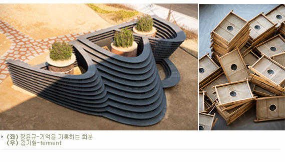 ‘길 갤러리’는 연구동 복도 길을 4팀이 두 개의 층으로 나눠 선보인 작품이다. 벽화가 갖고 있는장식적인 한계를 넘어, 새로운 패턴을 만들거나 로고를 이용한 극적인 조형물 등으로 창의적인 결과물을 만들어냈다. 이와 함께 샘표의 오래된 굴뚝을 활용해 만든 외부에 설치된 대형 화분인 장윤규의 ‘기억을 기록하는 화분’과 로비에 있는 발효에 사용하는 사각 틀을 활용한 사운드 오브제인 김기철의 ferment도 공간과 적절히 어우러지는 작품도 전시된다.