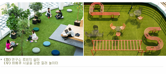 연구소라고 하면, 하얀 벽면에 각종 실험 도구들을 떠올리기 쉽다. 그러나 이에 대한 고정관념을 탈피하고 창의적인 공간으로 전환을 시도한 곳이 있다. 지난 5월 2일 충북 오송에 문을 연 샘표의 발효 전문 연구소인 ‘우리발효 연구중심’이 바로 그것이다. 예술계에서 샘표의 이름은 그리 낯설지 않다. 2005년 개관한 ‘샘표 스페이스’, 2011년 대규모 벽화 프로젝트 ‘샘표 아트 프로젝트’ 등은 문화, 예술과 기업의 적절한 호흡을 보여줬던 예로 손꼽혀왔다. 이번에는 연구소 내부를 작가들과의 협업을 통해 변화를 꾀하면서 실용성과 예술성을 겸비한 독특한 공간으로 탈바꿈시켰다.