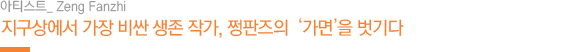 중국 3대 작가로 알려진 쩡판즈(Zeng Fanzhi)는 1964년 생으로, 후베이 미술학원 유화과를 졸업했다. 작가는 2007년 싱가포르 미술관(Singapore Art Museum)과 쌩떼띠엔느 현대 미술관(Mus?e d’Art Moderne de Saint-Etienne de Metropole) 고디아 재단(Fundacion Godia) , Barcelona, (2009), 불가리아에 있는 국립외국미술관(National Gallery for Foreign Art), 락번드 미술관(Rockbund Art Museum) 등에서 개인전을 열었다. 또한 2002년 광저우 트리엔날레(The 1st Guangzhou Triennale)와 2009 베니스 비엔날레(The 53rd Biennale di Venezia) 등 국제적인 행사에 참여해왔다. 그의 작품은 11월 5일까지 홍콩 가고시안 갤러리와 베니스 프랑수아 피노 재단(Francois Pinault Foundation)에서 지난 11월까지 열렸다. 현재 작가는 베이징에 거주하며 작업 중이다.